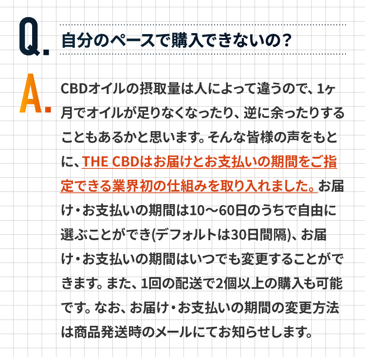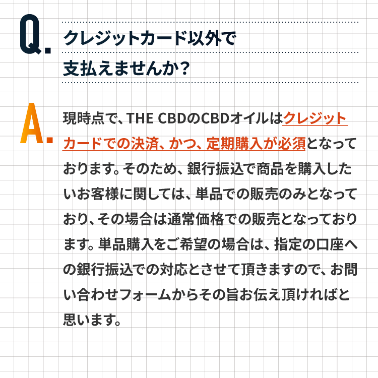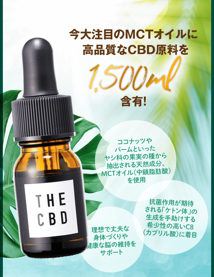 【THE CBD Oil 10ml 15%(1500mg)】栄養成分表示 1本(10ml)あたり:エネルギー70kcal、たんぱく質0g、脂質7g、炭水化物0g、食塩相当量0g価格:10,980円(税込11,858円)送料:600円(税込/全国一律) ※4回目からは送料無料【THE CBD Oil C8 MCT 10ml 15%(1500mg)】栄養成分表示 1本(10ml)あたり:エネルギー68kcal、たんぱく質0g、脂質7g、炭水化物0g、食塩相当量0g価格:18,980円(税込20,498円)送料:600円(税込/全国一律) ※4回目からは送料無料